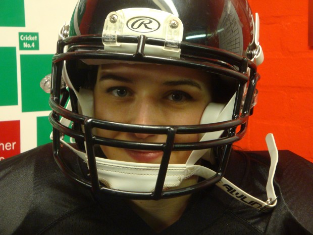 A committed team member, Quimbre has attended every training session that her academic commitments have allowed. She spent most of the season as an unused squad member during the Cobras’ 7-1 season in the BUCS Division One, but still attended every game. “I assumed I wasn’t going to play at all. I thought, ‘well, I’m a first year player and I’m a girl. I’ll never be able to see the field.’ But I was fine with it, I just wanted to learn the rules and join in.”