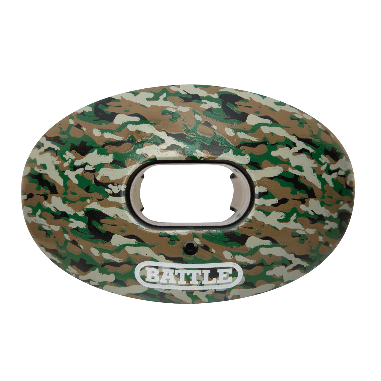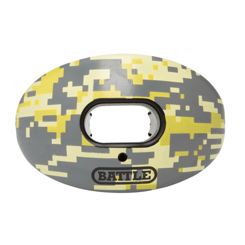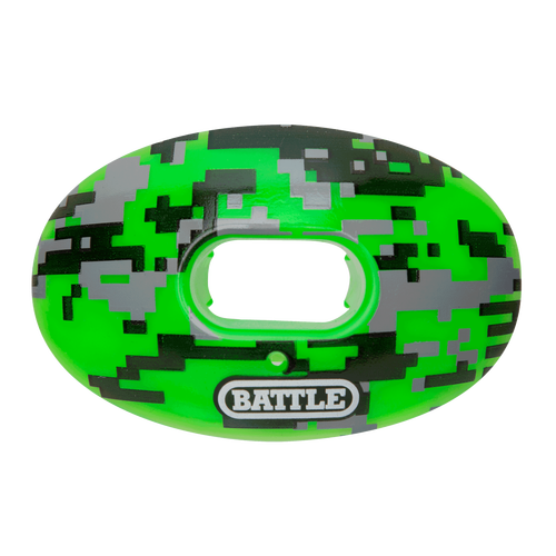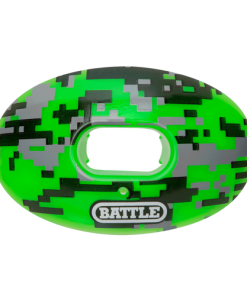 The Battle Oxygen Camo Mouth Guard is an advanced mouth protection system that rivals the safety and performance of custom-molded mouthguards, but at a fraction of the cost. There is no substitute. The Oxygen is the original patented mouthguard designed and developed by athletic, dental and medical experts to deliver superior airflow and better performance. It delivers more oxygen to the muscles for faster recovery, clearer thinking and faster reaction times play after play. Includes convertible strap.